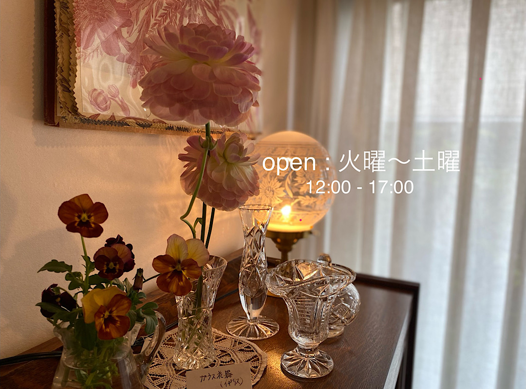 Midi Tablee ミディ・タブレ 熊本市内。小さなアパートの一室にあるアンティーク&インテリアShopです。 アンティーク家具やカーテン、ランプなど 心地よい暮らしのインテリアをご提案いたします。 少人数制の紅茶レッスン受付中。