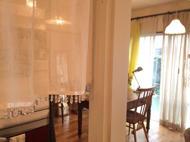 ガラスビーズが付いた涼しそうなカフェカーテンです。