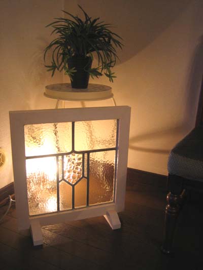 お部屋の雰囲気に合ったステンドグラスのデザインとサイズを選んで、このようなスタンドタイプに加工いたします。
