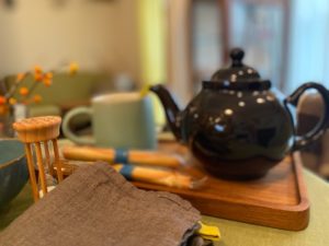 イギリス BROWN BETTYのティーポットとDENBYのマグカップで温かいミルクティーはいかがですか