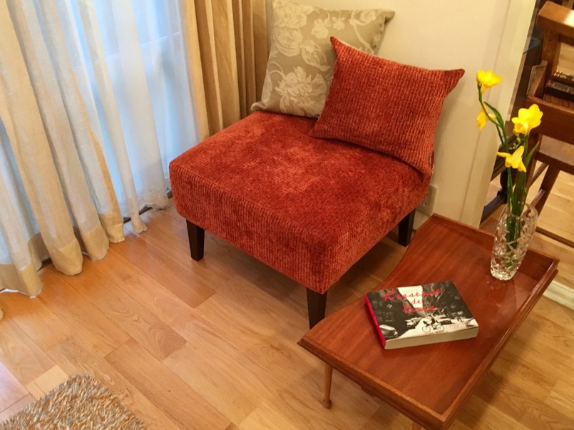 お気に入りの椅子生地(イギリス)で張ったオットマン。